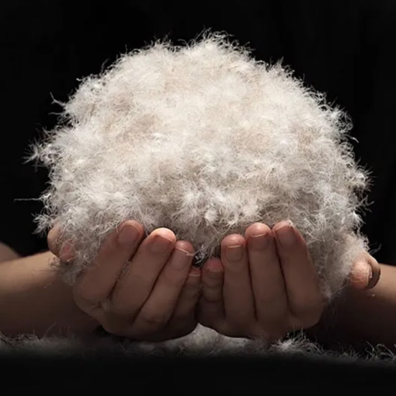 De kernedunproducerende områder af maven og halsen på gråænder er nøje udvalgt, og en videnskabeligt forholdsproces bruges til at kombinere 50 % højlofts grå andedun og 50 % højkvalitets fjerfibre for at danne en naturlig varm kompositstruktur. Dunen er i form af en tredimensionel sivklynge, og overfladen af hver dun er tæt dækket af et præcist trekantet poreritter for at bygge et dynamisk temperaturstyringsmikrocirkulationssystem - når det er koldt, krøller fiberen sig naturligt for at danne et luftisoleringslag, og når det er varmt, strækker fiberen sig for at fremme fugtudledning og opnå dobbelt intelligent regulering af temperatur og fugtighedsregulering. Den unikke hule fiberstruktur kan effektivt absorbere den varme, der udsendes af den menneskelige krop, samtidig med at den danner en naturlig termisk isoleringsbarriere, der effektivt blokerer for invasionen af eksterne kolde strømme og bringer den helt rigtige lys og varme oplevelse.