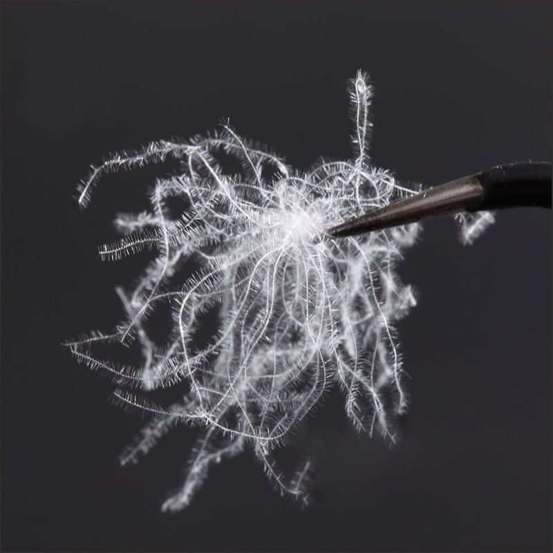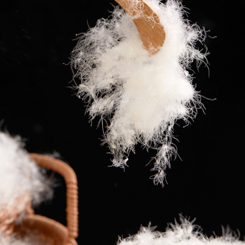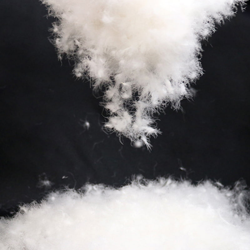Dunen stammer fra andens mave, hals, vinger og andre højkvalitets dun-producerende dele, og præsenterer en naturlig siv-lignende klyngeform med fremragende luftighed; suppleret med præcist proportionerede flagende fjer, bygger den en tredimensionel temperaturlåsende struktur. Som en naturlig animalsk proteinfiber er dunboldstrukturen tæt dækket med millioner af trekantede porer i nanoskala, der danner et dynamisk åndedrætssystem. Når det er varmt, strækker fiberen sig for at frigive varmeenergi, og når det er koldt, krymper den automatisk for at låse varmen fast. Mens den effektivt absorberer kroppens afledte varme, blokerer den indtrængning af ekstern kold luft for at opnå intelligent temperaturkontrol i al slags vejr. Let, blød og varm, tæt på kroppen uden tryk.