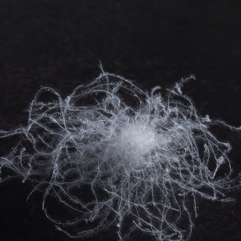 Den naturlige dun stammer fra de centrale dunproducerende områder i maven, halsen og vingerne på hvide gæs af høj kvalitet, og de naturlige dun præsenterer en unik form for sarte klynger som rørkatter, der danner et gyldent snit med de flagende fjer. Som en sjælden animalsk proteinfiber er overfladen af hver gåsedunsfiber tæt dækket med millioner af trekantede porer i nanoskala. Disse præcise porer er som mikrotemperaturstyringsenheder, der intelligent kan justere fibergabet i overensstemmelse med den omgivende temperatur for at danne et dynamisk temperaturkontrolnetværk. Når den varme ånde, der naturligt udsendes af den menneskelige krop, kommer i kontakt med dunlaget, låser porestrukturen effektivt temperaturen inde gennem adsorption på molekylært niveau og konstruerer samtidig en tredimensionel varmeisoleringsbarriere, der effektivt blokerer invasionsvejen for ekstern kold luft, hvilket bringer en plejeoplevelse med konstant temperatur i al slags vejr.